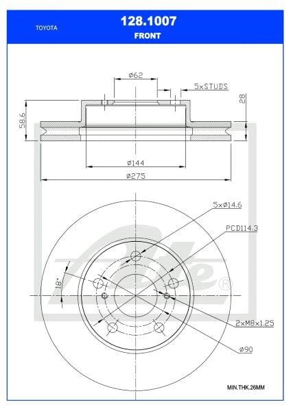Brake Disc Front Toyota Hilux 2016-On 2.5 2Kd-Ftv Single (Ate 128-1007)