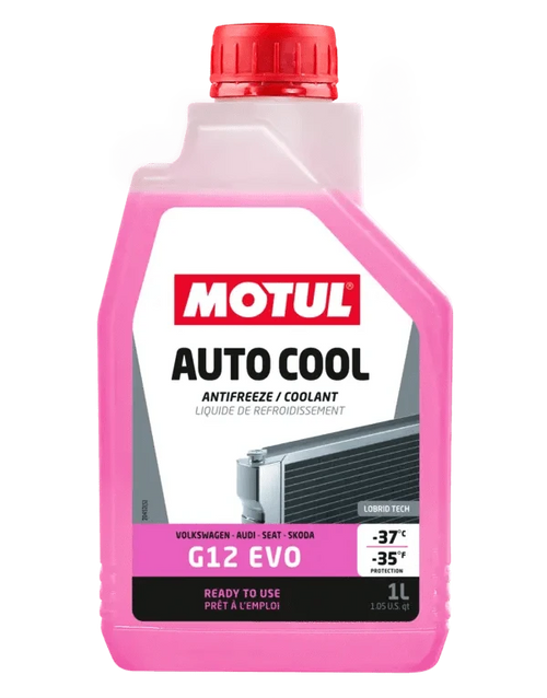 Motul Auto Cool G12 EVO -37°C is a ready to use, long life cooling liquid based on monoethylene glycol (MEG), using an Si-OAT hybrid organic / non-organic additive technology (“Lobrid Tech”). (112650)