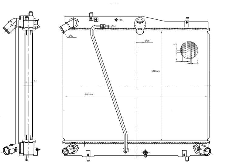 Yakhelwe ngamaphiko okupholisa ama-brazed kanye nomgogodla oqinile ongu-32mm , lesi sirediyetha sisekela ukudluliselwa kokushisa okusebenza kahle emsebenzini wokuqala wokuqalisa, ukuhamba ngomgwaqo onguthelawayeka, nemijikelezo yezohwebo efuna kakhulu - ilungele amatekisi, izimoto ezihamba ngezinyawo, nokusetshenziswa kokulethwa.